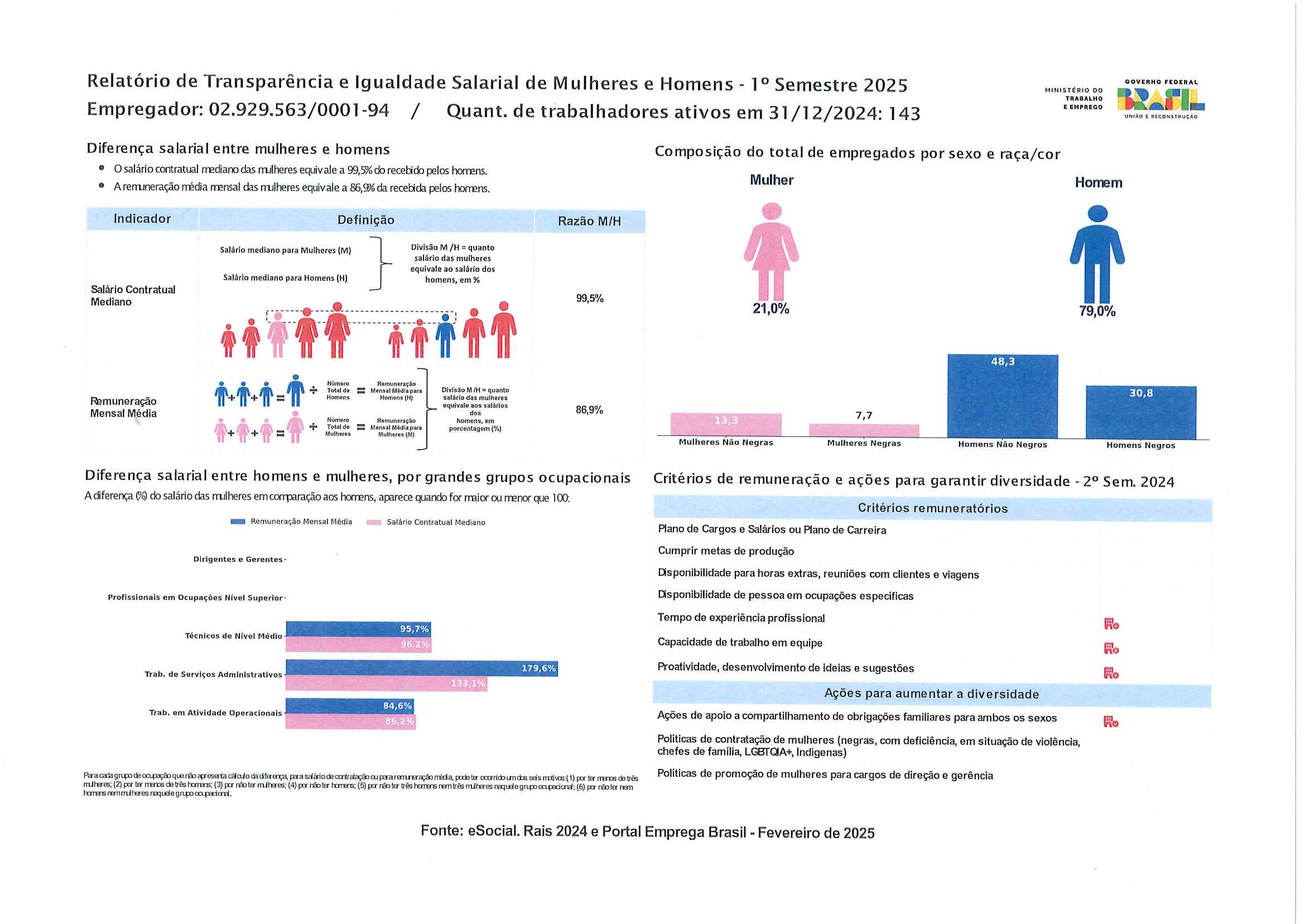Relatório de Transparência e Igualdade Salarial de Mulheres e Homens – 1º Semestre 2024 – CNPJ: 02.929.563/0001-94